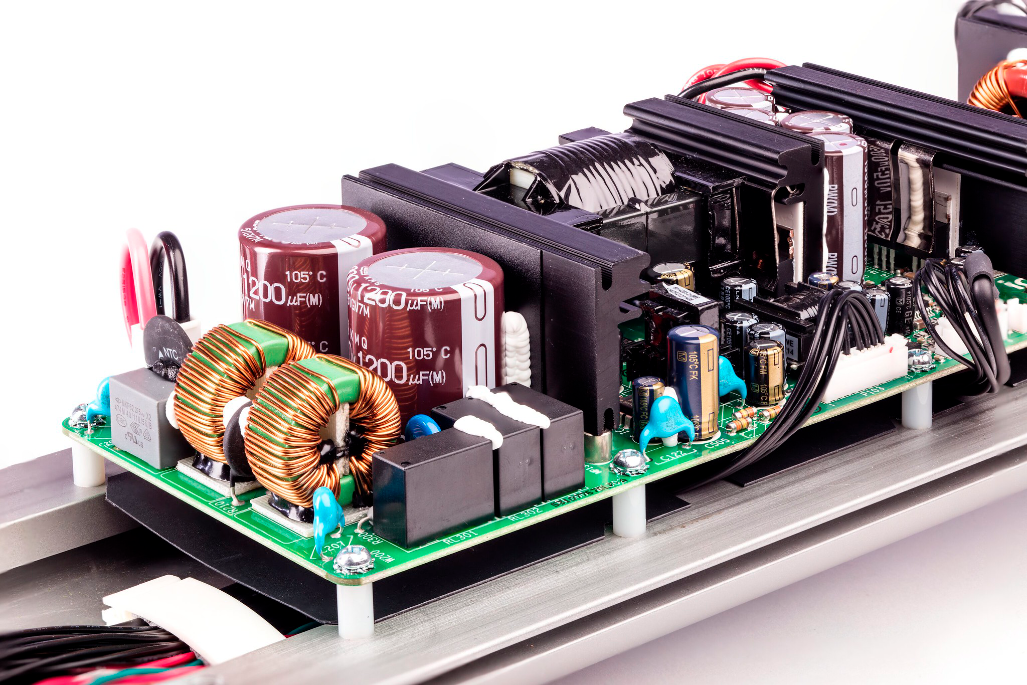 ウーファーよりさらに後方に見えるのが、DSP制御のクラスDパワーアンプです。このパワーアンプは700W×2(トータル1400W RMS、2800W Peak)の大出力を誇ります。パワーアンプは、ウーファー部のみ駆動するため、低音部がアクティブタイプ、中高音がパッシブタイプのハイブリッドタイプとなるわけです。