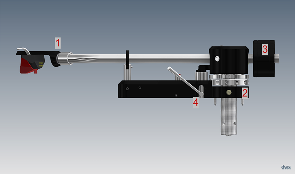 これにより、可能な限りスムーズな動作が保証されます。針圧は、目盛り付きの2つの部品から構成されるカウンターウェイトで設定し、6グラムから30グラムまでの幅広いカートリッジ使用することができます。